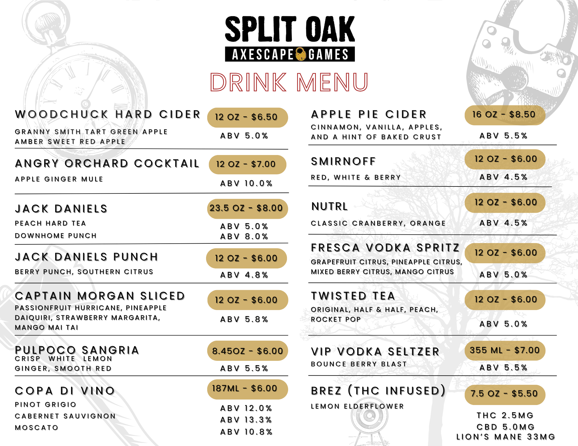 Current drinks offered are subject to availability